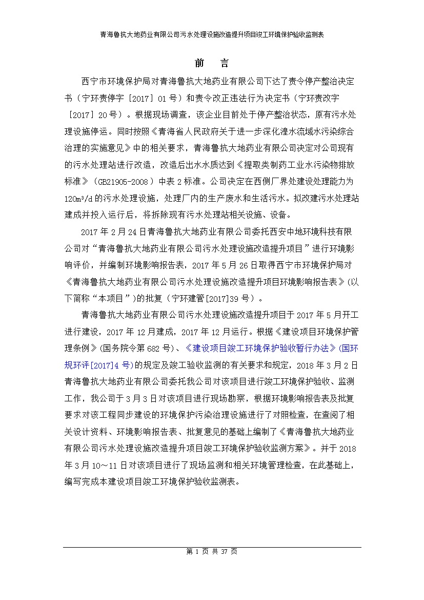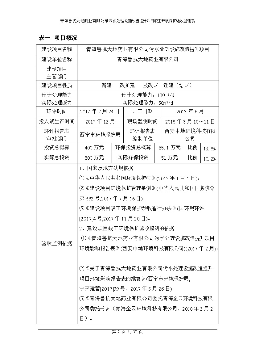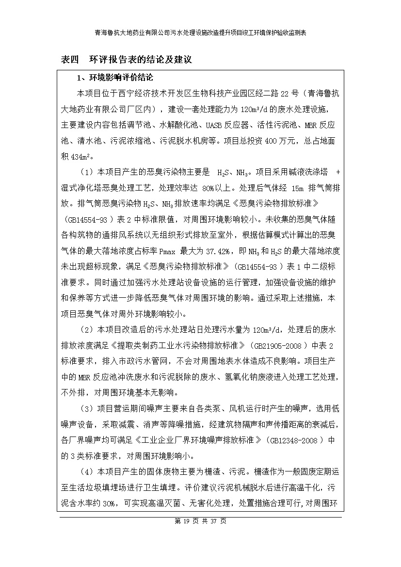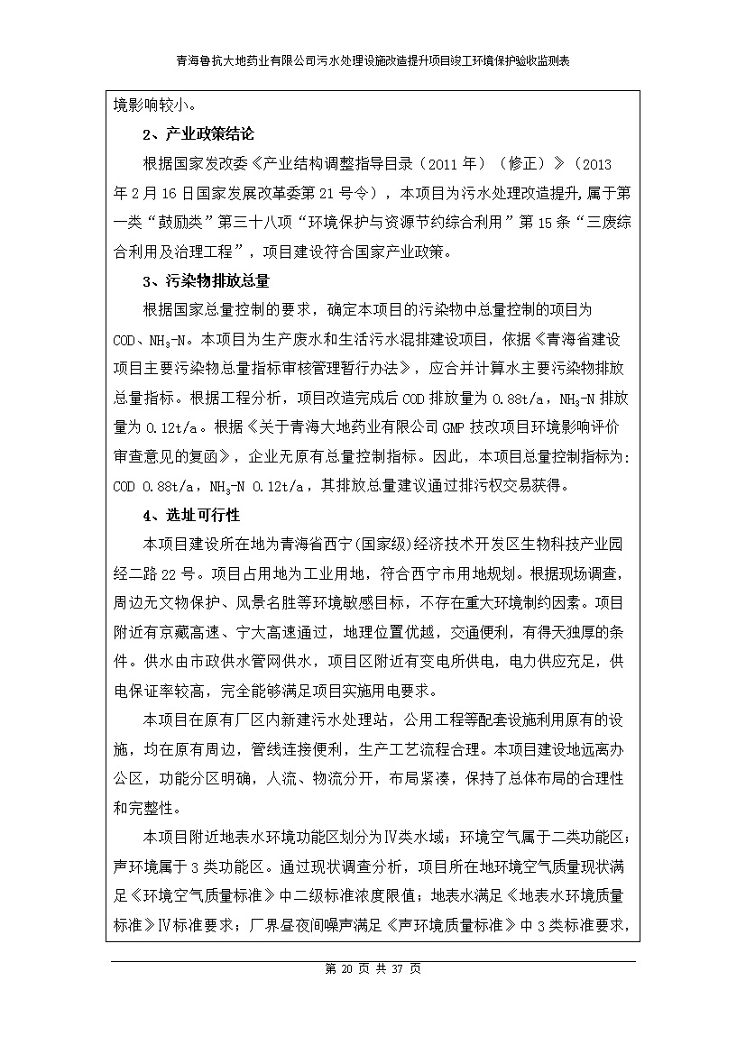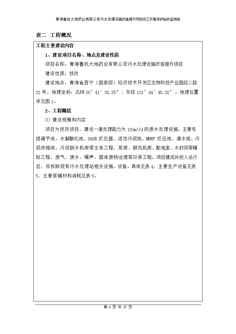青海魯抗大地藥業(yè)有限公司污水處理設(shè)施改造提升項(xiàng)目